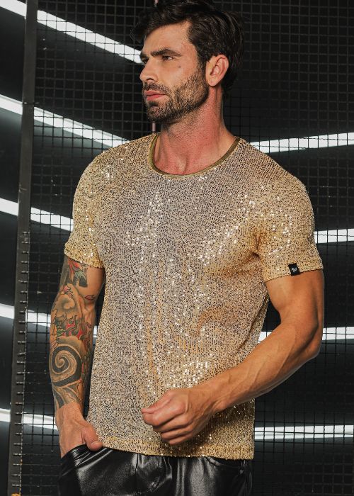Camiseta Masculina em Viscolycra Mangas Paetê Brunella